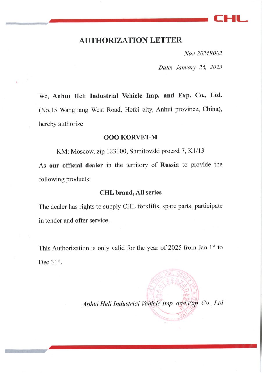 CHL - экспортное торговое наименование погрузчиков HELI.
